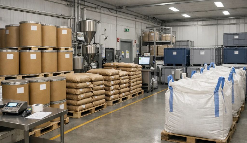 Las materias primas sostenibles pueden proceder de agricultura ecológica, reciclaje o procesos industriales de bajo impacto. Los polvos y granos, como harinas vegetales, ingredientes técnicos o materiales reciclados, requieren sistemas cerrados que eviten la contaminación y la dispersión.